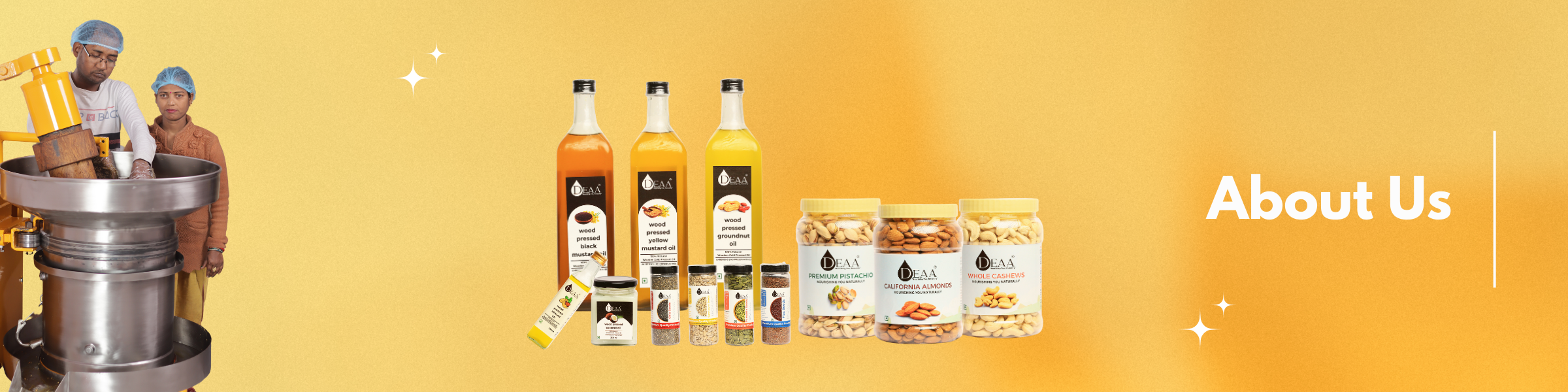 Welcome to DEAA Organics, your trusted source for premium-quality, natural products. At DEAA Organics, we are committed to providing you with the finest selection of dry fruits, seeds, and wood-pressed oils. Our journey began with a simple yet profound goal: to offer wholesome, pure, and unrefined products that contribute to a healthier lifestyle. Every product we offer is carefully curated to ensure it meets our high standards of quality and purity.