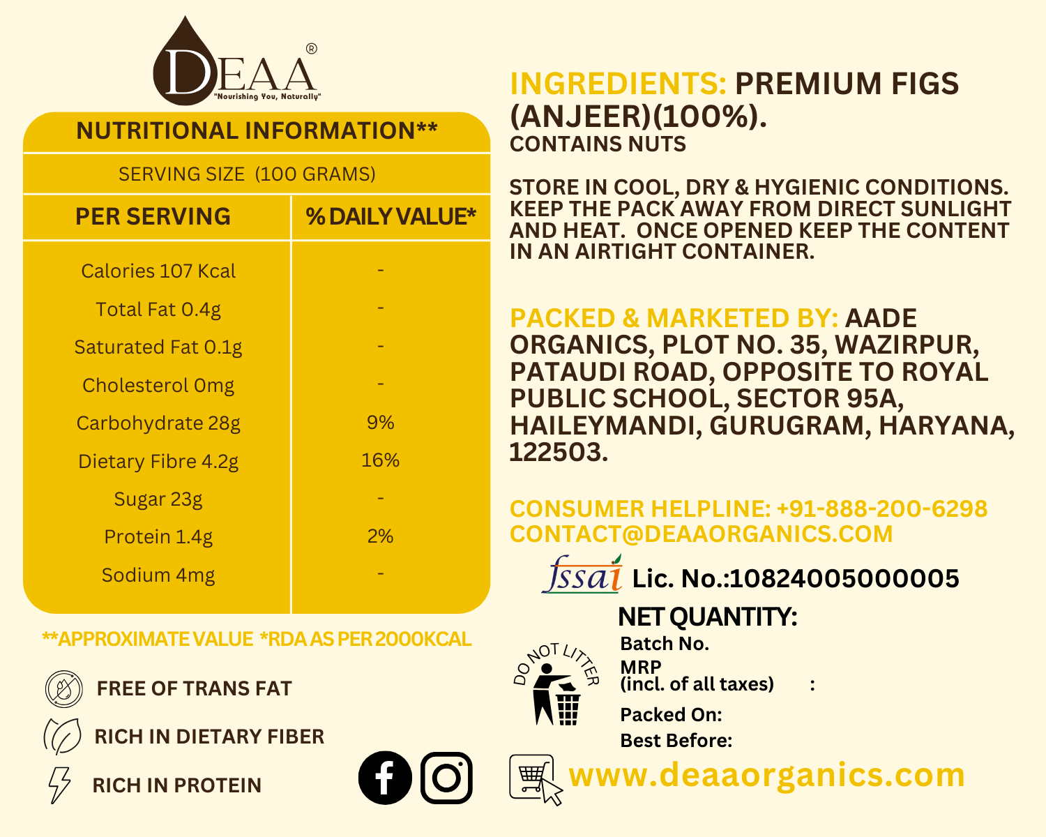 💪 Nutrient-Rich Goodness: Figs are a rich source of essential nutrients, including fibre, vitamins, and minerals, contributing to a wholesome snacking experience that supports your overall well-being.